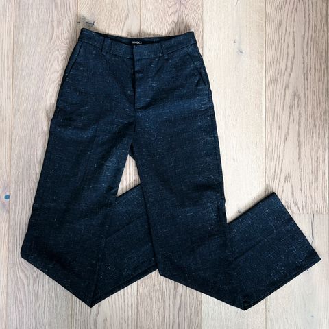 Topshopin mustat leveälahkeiset housut joustavalla ja rusetilla kiristettävällä pussivyötäröllä. Kokopituus 90cm. Menee hyvin XS-S. 2nd handina Vintedistä ostettu, ei vaan löytynytkään itsellä käyttöä.