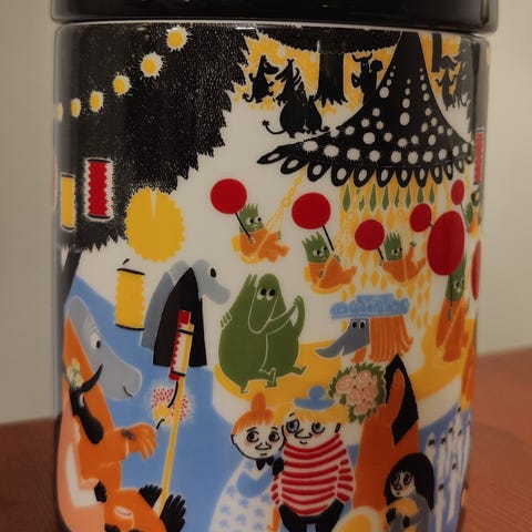 Myydään Arabian Muumi-purkki, kuosi ystävyys.