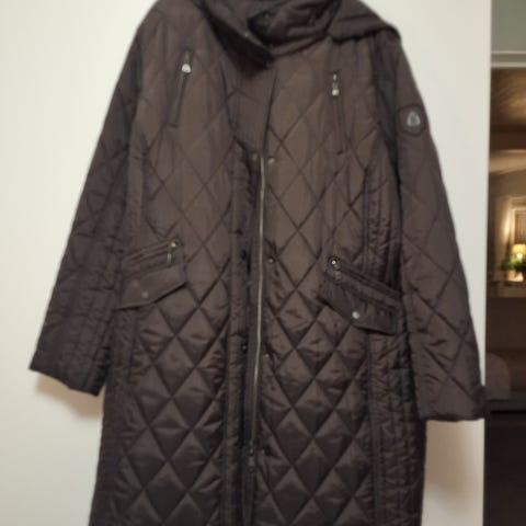 Koko 44-46. Paksu pehmeä toppatakki. Kahdet taskut edessä. Huppu