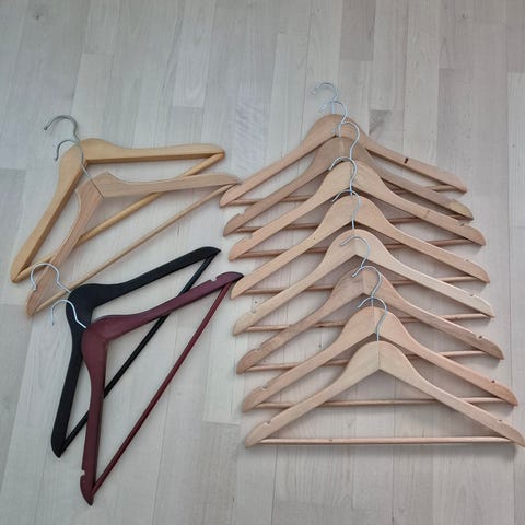 Myydään puiset henkarit, yhteensä 13 kpl.