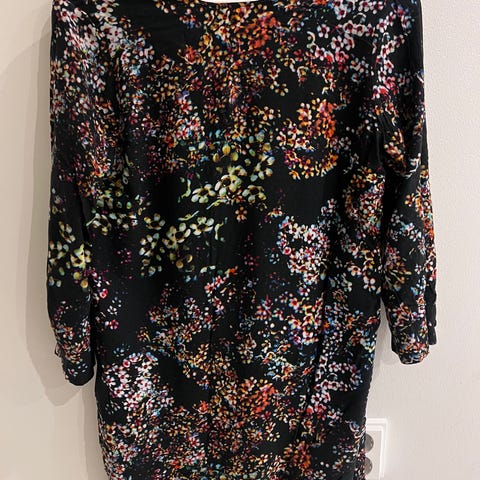 & Other Stories musta rento avoselkäinen mekko naisten koossa 36. Laskeutuu kauniisti, kellomallinen. Yksityiskohtana saumat edessä ja takana keskellä. Kevyt kangas, mutta normivalossa ja -käytössä ei noin läpinäkyvää kuin kuvassa. V-aukon alaosassa pientä kulumaa, joka näkyy läheltä katsottuna. Pituus 80cm.