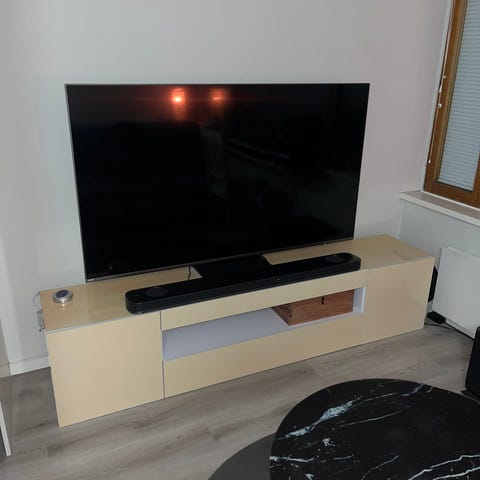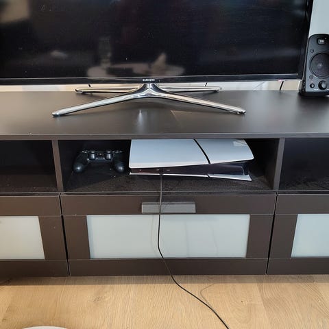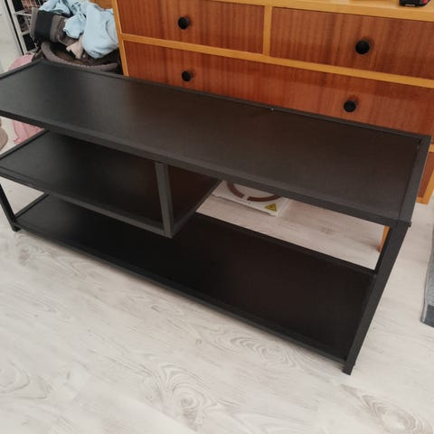 Musta TV-taso, mitat kuvissa. Televisio myös myynissä. Kysy/tarjoa.