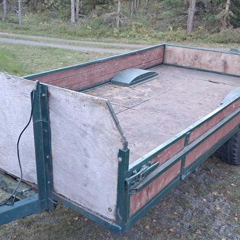 Hyväkuntoinen omavalmiste peräkärry tarpeettomana. Takalaita suunniteltu käytettäväksi ajoramppina. Ledivalot ja pressulle alumiiniset säädettävät tukikaaret. Sisämitat 1230x2170. Kantavuus 600kg, omapaino 160kg.