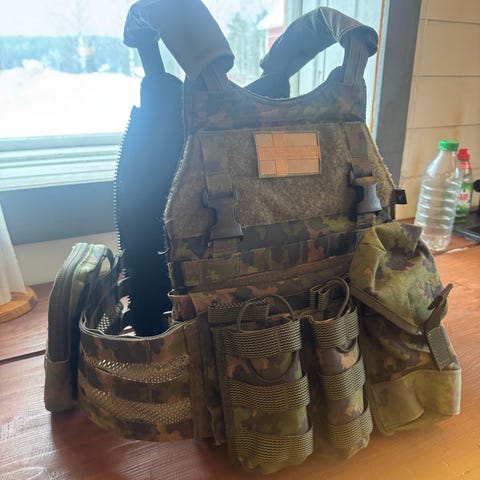 Includes approximately 11 pockets, depending on how they are counted, offering ideal storage for small gear and, for example, magazines for hunting or airsoft purposes. Mostly stored unused. Sold due to an upcoming move. Shipping available, or local pickup in Lauttasaari, Helsinki.