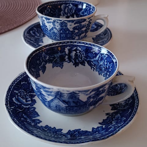 Myydään vanhoja Arabia Maisema-kahviastioita.