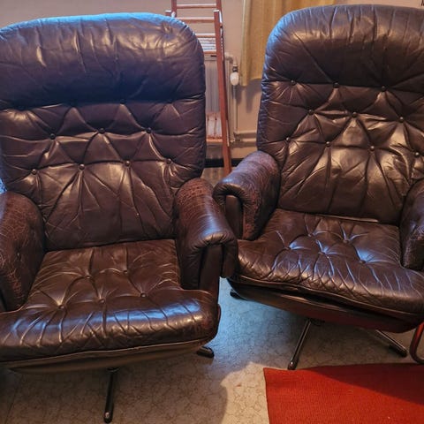 Toinen nojatuolista paremmassa kunnossa. Pöytä paremmassa kunnossa.