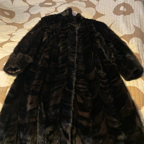 Uutta vastaava pitkä turkistakki, joka on ollut vähäisessä juhlakäytössä. Turkin on valmistanut Turkisliike Airamo Torniossa. Takissa irrallinen huppu. Turkkia voidaan käyttää kaksipuolisena.
