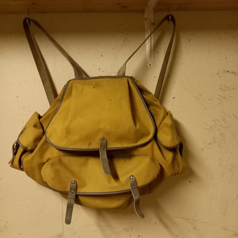 Monitaskuinen reppu vihreällä värillä. Reppu sisältää useita taskuja ja säädettävät olkahihnat. Materiaali ja tarkat mitat eivät ole tiedossa.