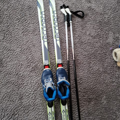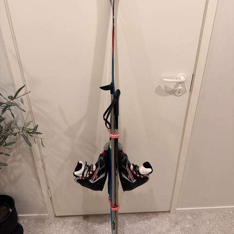 Sukset 150cm, sauvat 125cm ja monot 37