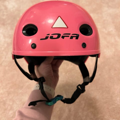 Yhdellä lapsella käytössä ollut Jofan luistelukypärä. Koko 49-56.