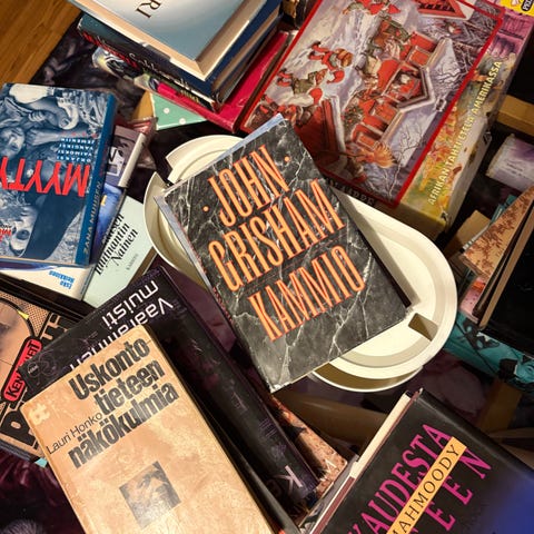Kuvan kirjat, annetaan pakettina. Vain haku. Savuton koti.