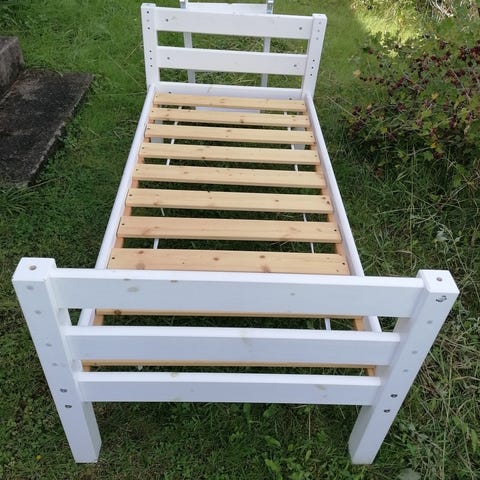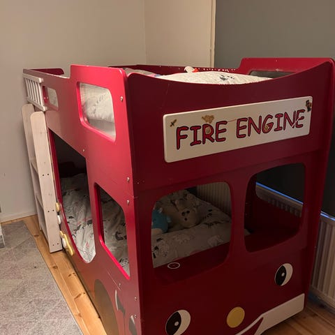 Myydään siniharmaa lasten kerrossänky. Patjakoko 90 x 200, korkeus n. 142cm. Myydään purettuna ja ilman patjoja. Ohjeet kadonneet, mutta netistä saattaa löytyä apua tarvittaessa. Jämäkkä runko, jossa kulumaa ja käytön jälkiä (kuvat).