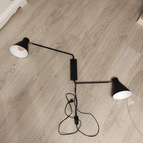 Myytävänä käyttämätön Watt & Veke Bob -seinävalaisin. Mukana tulee seinäkoukku, johon valaisimen voi laittaa roikkumaan. Musta johto, jossa katkaisija ja johdon pituus 220 cm. Max. lampun koko 40 W.