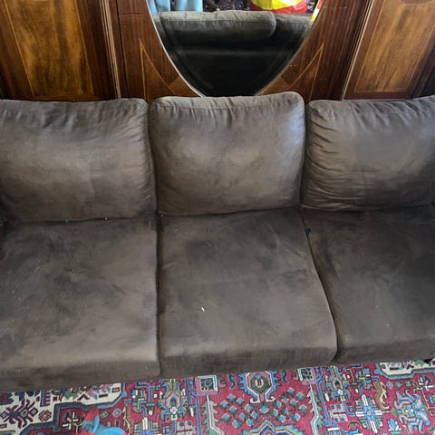 Kaunis sohva, jossa on pieniä vikoja. Sohva on muuten ehjä, vaikka ei olekaan priimakunnossa. Syvyyttä vaikea mitata sohvan muodon takia. Siistin sohvaa sen verran kun pystyn ennen hakua. Sohva täytyy kantaa kuudennesta kerroksesta alas, koska ei mahdu hissiin. Tarvitset siis kantamiseen kaksi henkilöä ja auton. Koiratalous. Haku Kruununhaasta.