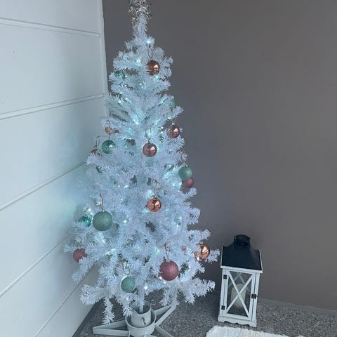 Kaksi joulua käytössä ollut muovikuusi.