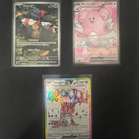Kortteja on n. 20 eri sarjasta vuosilta 2020-25, mm. surging sparks , prismatic evolutions, journey, destinations ,black & white sarjaa sekä uutta phantasmal sarjaa +