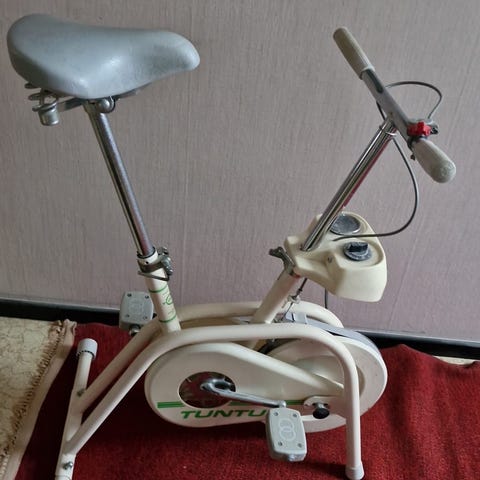 Ikääntynyt, mutta vähän käytetty ja täysin toimiva Tunturi Kuntopyörä Comfort Cycle F 300. Toimiva näyttö ja ohjekirja. Annetaan pois tarpeettomana.