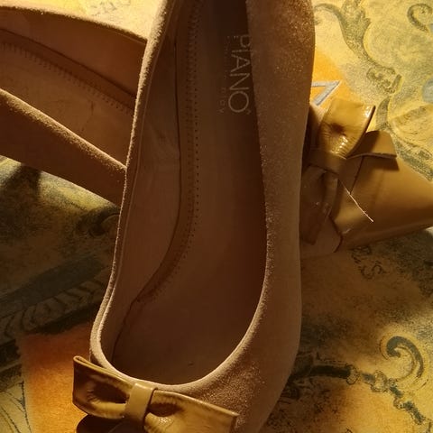 Kuin uudet mokkanahkaiset juhlakengät. Korko 9 cm.