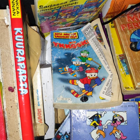Pino Aku ankkoja. Nopealla selauksella hyväkuntoisia. Paitsi ylimmäinen pinossa, joitain sivuja teippailtu.