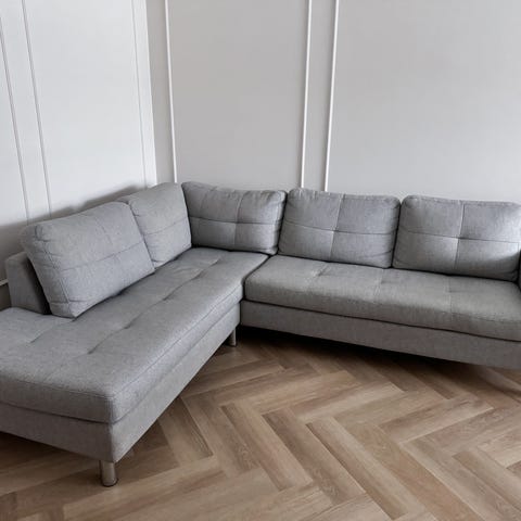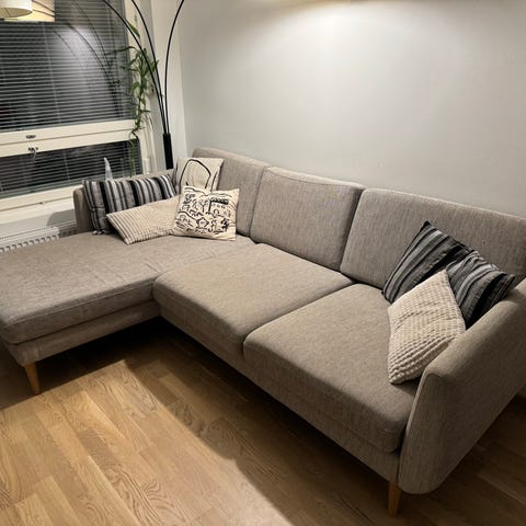 Ikean Kivik 2+3+kulmapala istuttava kulmasohva. Päälliset vaaleanharmaat, irroitettavat ja pieniä tahroja löytyy (pesu jää ostajalle). Muuten ehjä ja hyvä istuttava sohva.