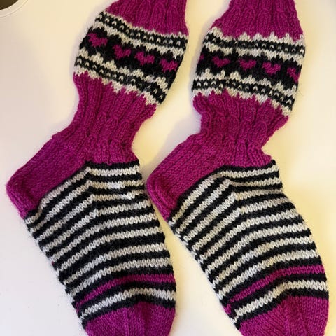 Uudet käsin neulotut Jonsukkien ohjeilla kirjoneulesukat koko 38