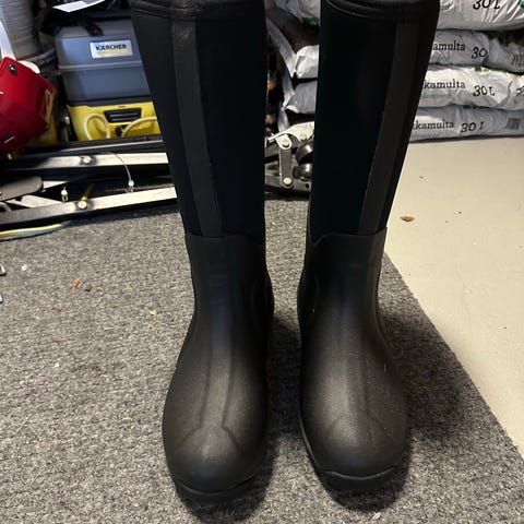 Lämpösaappaat, kokoa 11. Varmaan 45 Eurooppalaisella kokotaulukolla. Ostin liian isot itselle ja unohdin vaihtaa ajoissa. Kerran olleet jalassa kelkkaillessa.