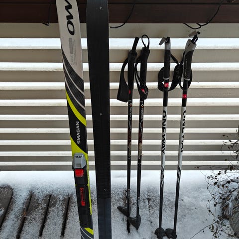 Peltosen 120cm sukset NNN-siteellä ja 90cm sauvat. Vain nouto Muotialasta.