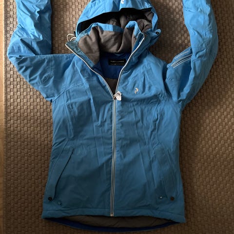Naisten Peak Performance takki mustassa värissä, koko S. Takissa on huppu ja vetoketjutaskut. Ehjä ja siisti. Lumilukko. Kiristettävä reunus alaosassa.