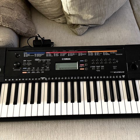 Tästä seuraavalle soittajan alulle Yamahan kosketinsoitin. Koskettimet kaikki toimivat ja käytössä on useita eri ääniä mitä soittaa.