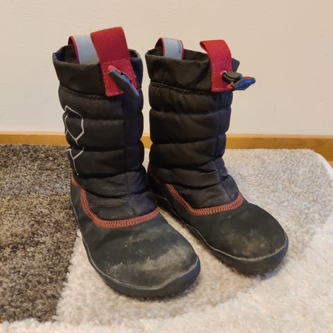 Yhdellä lapsella käytetyt Vivon paljasjalkakengät välikauteen. Koko 27, sm 17,4cm. Vettähylkivät, lämpimät. Mustassa pinnassa hiekkalikaa, pohjat kantapäistä kuluneet. Muutoin hyvässä kunnossa, tarrat pitävät. Vivon thermal lämpöpohjalliset.