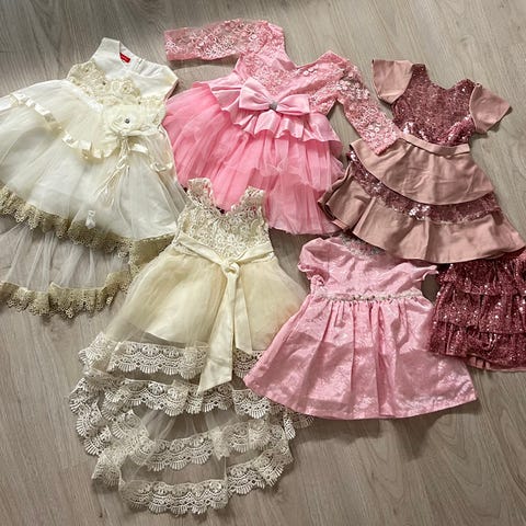 Ihana prinsessamekko, koko 92. Todella kaunis ja runsashelmainen.