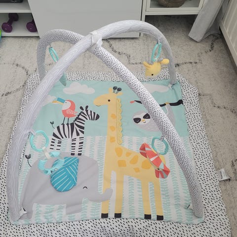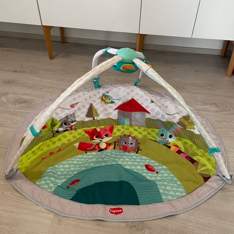 Värikäs ja monin tavoin vauvaa aktivoiva leikkimatto. Leikkimattoa voi käyttää sellaisenaan tai leppäkertun avulla mm. vatsallaan leikkimistä tukien. Osat ovat pestäviä.