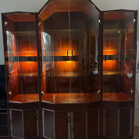Ihan hyvässä kunnossa. Yksi lasitaso mennyt rikki. 4 tasoa. Kysymällä lisätietoa.