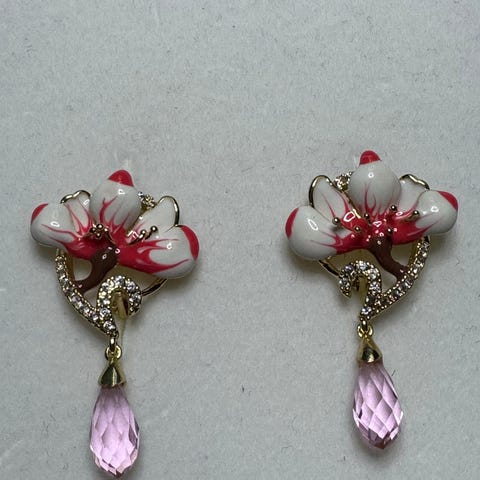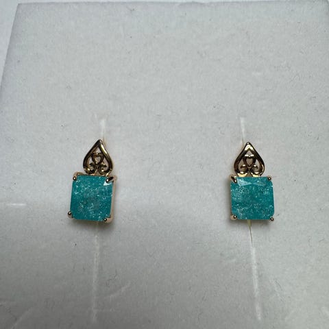 Upeat turkoosin kristallin ympärille email ja kivi koristeilta . Kullatut sarana korvarkorut