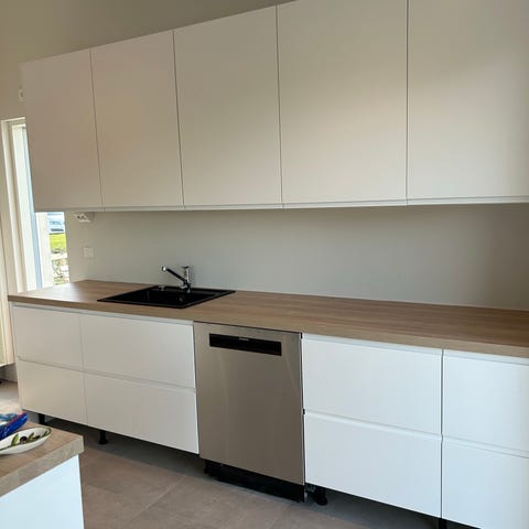Koivuinen keittiön työtaso. Pituus 260cm, syvyys 63cm ja paksuus 3cm. Tason toisessa päässä on seinän puolelle tulevassa takakulmassa viiste joka näkyy kuvassa. Tason pinnassa on samassa päädyssä kaksi poran jälkeä mutta ei läpireikiä, näkyy kuvassa. Tason seinän puolelle tulevalla sivulla on pieni reiän paikkauksen jälki, näkyy kuvassa. Paikkaus on 90cm päässä viistetystä päästä. Tason pinnnasta on hiottu lakka pois eli on valmis uudelle pinnoitteelle.