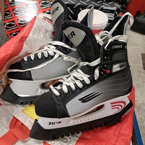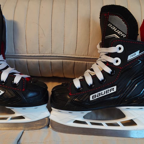 Käytetyt Bauer Laser 65 -jääkiekkoluistimet, lasten koko 25. Olleet käytössä satunnaisesti kolmella lapsella, mutta edelleen hyvässä kunnossa, katso kuvat. Sopivat jääkiekon harrastamiseen tai ihan vaan luistelemiseen. Aito Kanadassa valmistettu, laadukas malli.