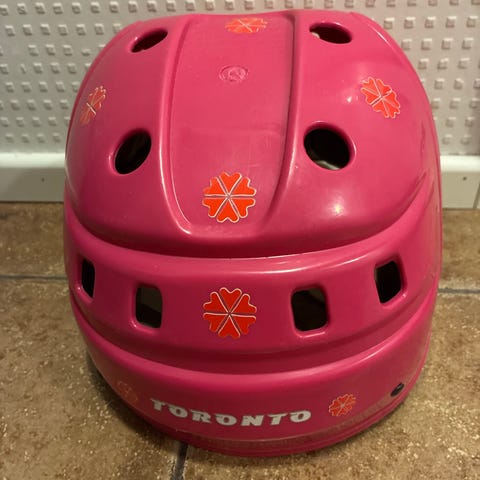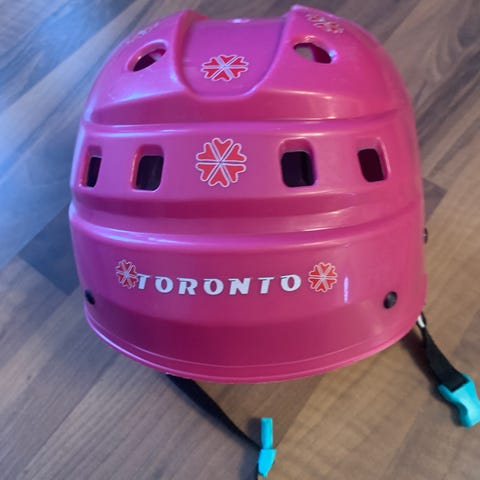 Toronto luistelu kypärä, koko 50- 55 cm, purppuranvärinen. Sisäpuolella pehmusteet istuvuuden ja mukavuuden parantamiseksi. Varustettu leukahihnalla.