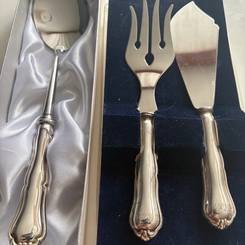 Myynnissä erittäin vähän käytettyjä hopeisia/ teräs ruokailuottimia.