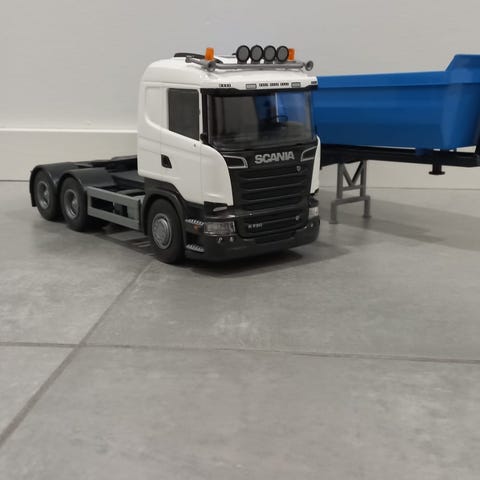 Emek Scania sorakuorma-auto ja perävaunu. jossa kuorma-auton ja perävaunun yhdistelmä. Väri punainen, materiaali muovi/metalli.
