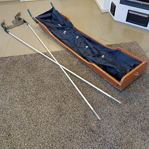 Myydään omavalmiste ahkio. Kaaritettu vanerirunko joka on ulkopuolelta laminoitu lasikuidulla. Ahkio on n. 2 metriä pitkä, modaamalla vaikkapa kelkankin ahkioksi. Alumiiniset vetoaisat mukaan.