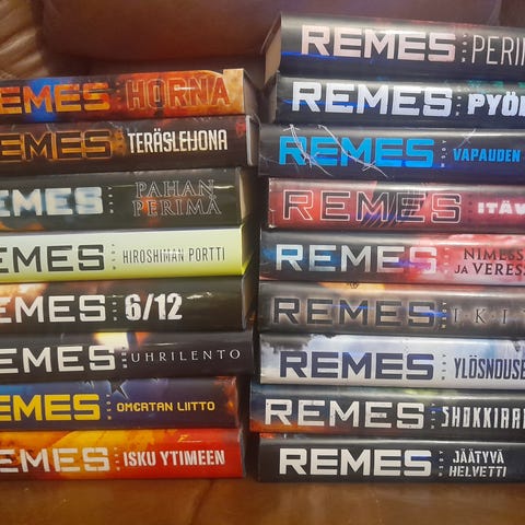Remes kirjasarja sisältää kuusi osaa: Pahan perimä, Hiroshiman portti, Praetoriaani, Ylösnousemus, Shokkiaallot ja Teräsleijona. Kirjat ovat suomenkielisiä ja kuuluvat samaan kirjailijasarjaan.