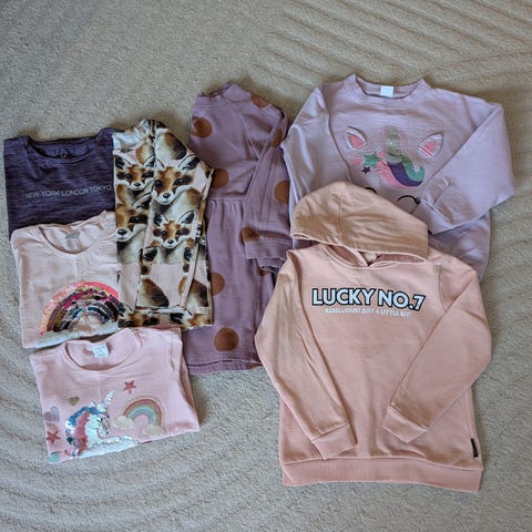 Hyvä pohja tai täydennyspaketti kokoon 110/116 parin uuden vaatteen hinnalla.