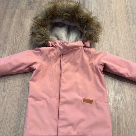 Hyväkuntoinen. Mini reikä toisen taskun kohdalla. Reilua kokoa. Oli meillä käytössä vielä 92-98 koossa
