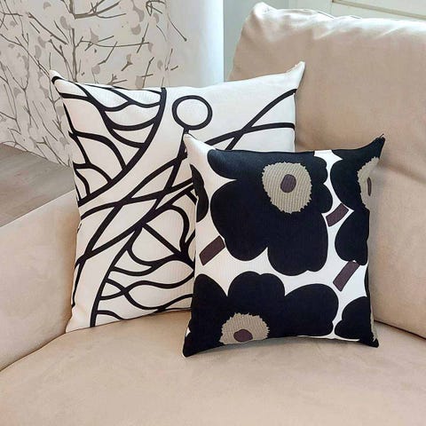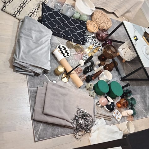 Marimekon ikkunaverhoja, tyynynpäällisiä, petivaatesettejä, pyyhkeitä, kankaita, astioita ja koriste-esineitä.
