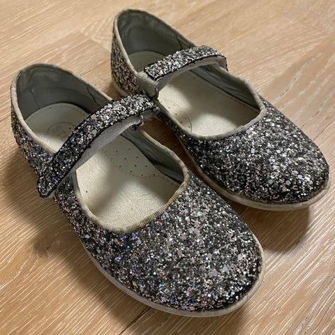 Uudenveroiset kultaiset jumppatossut vailla uutta käyttäjää. Koko 30.