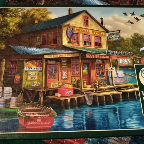 Kaksi kertaa koottu palapeli. 1000 palaa. Kaikki palat tallessa.