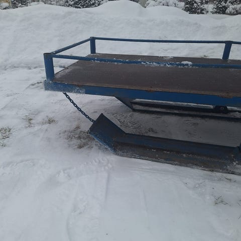 Teräksestä valmistettu reki vahvateräsrakenne nytkät jalaksissa ja aisassa.jalakset n.35cm leveät .lava n.250cm pituus ,100 cm leveä.Sijainti Hyrynsalmi kk