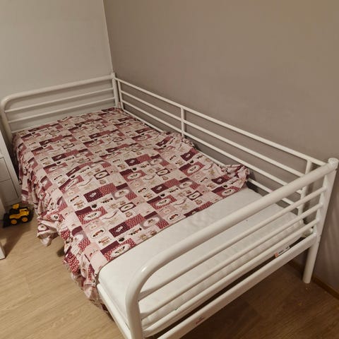 Metallinen sängynrunko, vaahtomuovipatja ja Jyskyn 80cm sijauspatja (2kk vanha, käytetty vierassänkynä). Merkistä ei tietoa. Huom itse patja 80cm (160cm avattuna). Pitää purkaa ennen kuljetusta. Yksi alkuperäinen sivuruuvi kateissa, tilalle laitettu korvikeruuvi. Muuten siistissä kunnossa. Vain nouto, maksu mobilepay