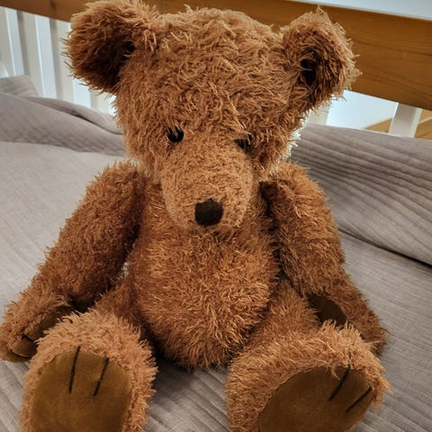 Suloinen Russ Frizzly ruskea nallekarhu, pituus noin 20 cm.