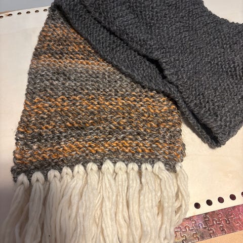 Pehmeä pitkä itse kudottu kirjava villahuivi